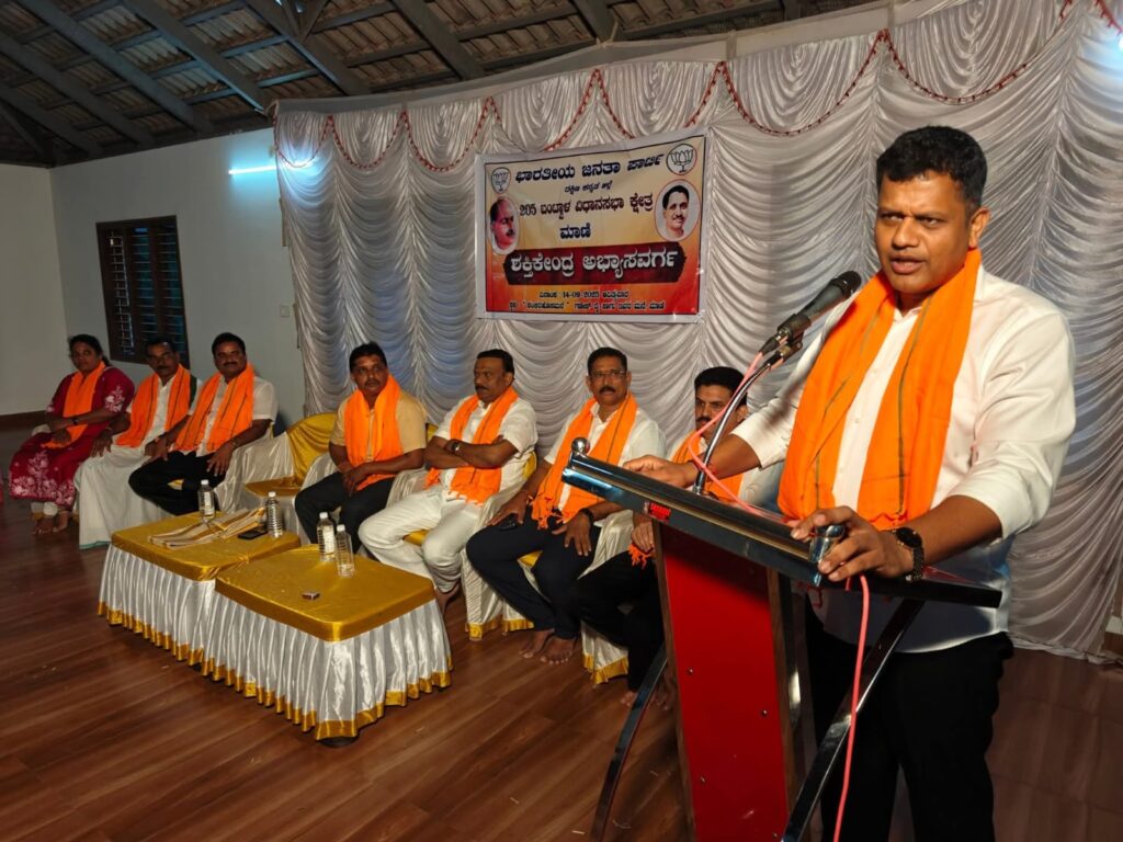 ದೇಶ ಕಟ್ಟುವ ಕಾರ್ಯದಲ್ಲಿ ತಮ್ಮನ್ನು ತೊಡಗಿಸಿಕೊಳ್ಳುವ ಮೂಲಕ ಪಕ್ಷದ ಸಂಘಟನೆಯಲ್ಲಿ ಕಾರ್ಯಕರ್ತರು ಸಕ್ರೀಯವಾಗಿರಬೇಕು. ಭಾ.ಜ.ಪ ಕೇವಲ ರಾಜಕೀಯ ಪಕ್ಷವಾಗಿರದೆ ತತ್ವ ಸಿದ್ದಾಂತದ ಮೂಲಕ ರಾಷ್ಟ್ರ ನಿರ್ಮಾಣ ಕಾರ್ಯದಲ್ಲಿ ಸಕ್ರೀಯವಾಗಿದೆ. 20 ಕೋಟಿಗಿಂತಲೂ ಹೆಚ್ಚು ಸದಸ್ಯರನ್ನು ಹೊಂದಿರುವ ಬಿಜೆಪಿಯು ಜಗತ್ತಿನ ಅತೀ ದೊಡ್ಡ ಸಂಘಟಿತ ರಾಜಕೀಯ ಪಕ್ಷವಾಗಿದೆ ಎಂದು ಬಂಟ್ವಾಳ ಶಾಸಕ ರಾಜೇಶ್ ನಾಯ್ಕ್ ಹೇಳಿದರು. ಅವರು ಮಾಣಿ ಮಹಾಶಕ್ತಿ ಕೇಂದ್ರದ ಅಭ್ಯಾಸ ವರ್ಗ ಕಾರ್ಯಕ್ರಮವನ್ನು ಉದ್ದೇಶಿಸಿ ಮಾತನಾಡಿದರು. ಶಕ್ತಿ ಕೇಂದ್ರದ ಪ್ರಮುಖ ಹರೀಶ್ ಕುಲಾಲ್ ಸಭೆಯ ಅಧ್ಯಕ್ಷತೆಯನ್ನು ವಹಿಸಿದ್ದರು.
