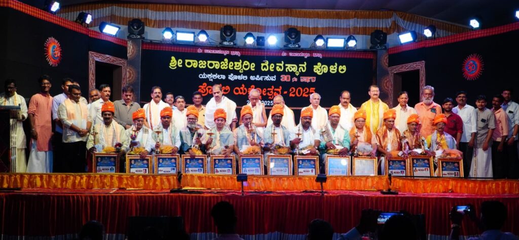 ಪೊಳಲಿ ಶ್ರೀ ರಾಜರಾಜೇಶ್ವರಿ ದೇವಸ್ಥಾನದ ರಾಜಾಂಗಣದಲ್ಲಿ ಸೆಪ್ಟೆಂಬರ್ 27 ರಂದು ಯಕ್ಷಕಲಾ ಪೊಳಲಿ ಇದರ 30 ನೇ ವರ್ಷದ ಪ್ರಯುಕ್ತ ತ್ರಿಂಶತಿ ಸಂಭ್ರಮದ ‘ಪೊಳಲಿ ಯಕ್ಷೋತ್ಸವ’ವು ಪ್ರಶಸ್ತಿ ಪ್ರದಾನ, ಗೌರವಾರ್ಪಣೆ, ಸಮ್ಮಾನ, ಸಂಸ್ಮರಣೆ ಹಾಗೂ ಯಕ್ಷಗಾನ ಪ್ರದರ್ಶನದೊಂದಿಗೆ ಸಂಪನ್ನಗೊಂಡಿತು. ಪೊಳಲಿ ರಾಮಕೃಷ್ಣ ತಪೋವನದ ವಿವೇಕ ಚೈತನ್ಯಾನಂದ ಸ್ವಾಮೀಜಿಯವರು ಆಶೀರ್ವಚನ ನೀಡಿದರು. ಸಮಾರಂಭದಲ್ಲಿ ಯಕ್ಷಕಲಾ ಪೋಷಕ ಮಂಗಳೂರು ಕೆ.ಎಂ.ಸಿ. ಆಸ್ಪತ್ರೆಯ ಹೃದ್ರೋಗ ತಜ್ಞ ಡಾ. ಪದ್ಮನಾಭ ಕಾಮತ್ ಇವರಿಗೆ ‘ಪೊಳಲಿ ಯಕ್ಷೋತ್ಸವ ಪ್ರಶಸ್ತಿ’ ಪ್ರದಾನ ಮಾಡಲಾಯಿತು. ಅಲ್ಲದೇ ಯಕ್ಷಗಾನ ರಂಗದ ವಿಶಿಷ್ಟ ಸಾಧನೆಗಾಗಿ ಹಿರಿಯ ಕಲಾವಿದರಾದ ಭಾಸ್ಕರ ರೈ ಕುಕ್ಕುವಳ್ಳಿ, ಮಾಂಬಾಡಿ ಸುಬ್ರಹ್ಮಣ್ಯ ಭಟ್, ಅಡೂರು ಲಕ್ಷ್ಮೀನಾರಾಯಣ ರಾವ್, ಕೊಳ್ತಿಗೆ ನಾರಾಯಣ ಗೌಡ, ಉಬರಡ್ಕ ಉಮೇಶ್ ಶೆಟ್ಟಿ, ಜಬ್ಬಾರ್ ಸಮೋ ಸಂಪಾಜೆ, ಶಿವರಾಮ ಪಣಂಬೂರು, ಗಿರೀಶ್ ಹೆಗ್ಡೆ ಪುತ್ತೂರು, ಜಗದಾಭಿರಾಮ ಸ್ವಾಮಿ ಪಡುಬಿದ್ರೆ, ನಾ. ಕಾರಂತ ಪೆರಾಜೆ, ನಗ್ರಿ ಮಹಾಬಲ ರೈ, ಮಹಾಬಲೇಶ್ವರ ಭಟ್ ಭಾಗಮಂಡಲ ಹಾಗೂ ಲೇಖಕ ಡಾ. ವಸಂತಕುಮಾರ ಪೆರ್ಲ ಇವರಿಗೆ ಪ್ರಶಸ್ತಿ ನೀಡಿ ಸನ್ಮಾನಿಸಲಾಯಿತು.