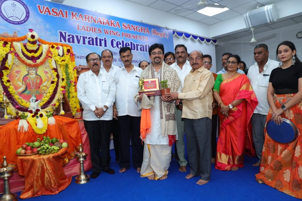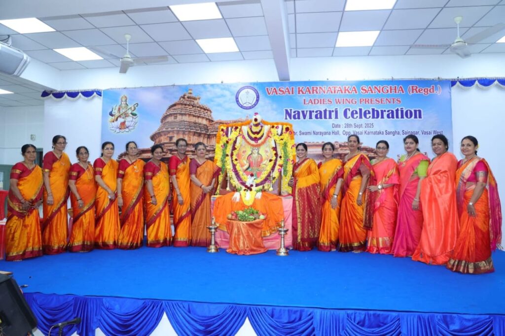 ನವರಾತ್ರಿಯು ನವದೇವಿಯರನ್ನು ಆರಾಧಿಸುವ ಹಬ್ಬವಾಗಿದೆ. ನವರಾತ್ರಿಯ ನಿಮಿತ್ತ ವರ್ಷಂಪ್ರತಿ ಪರಿಸರದ ಕನ್ನಡಿಗರನ್ನು ಒಗ್ಗಟ್ಟು ಮಾಡಿ ಮಹಿಳಾ ವಿಭಾಗದ ಸದಸ್ಯೆಯರು ಶಾರದಾ ಪೂಜೆಯನ್ನು ಹಮ್ಮಿಕೊಳ್ಳುತ್ತಾ, ಈ ವರ್ಷ ಉಷಾ ಶ್ರೀಧರ್ ಶೆಟ್ಟಿಯವರ ನೇತೃತ್ವದಲ್ಲಿ ಇದನ್ನು ವಿಭಿನ್ನವಾಗಿ ಆಯೋಜಿಸಿ ಬಾರೀ ಸಂಖ್ಯೆಯಲ್ಲಿ ಮಹಿಳೆಯರನ್ನು ಒಂದುಗೂಡಿಸಿದ್ದಾರೆ. ಅದರೊಂದಿಗೆ ಮಹಿಳೆಯರ ಭಜನೆ, ಮಕ್ಕಳ ಕುಣಿತ ಭಜನೆ, ವಿಜಯ ಶೆಟ್ಟಿ ಮೂಡುಬೆಳ್ಳೆಯವರ ಭಕ್ತಿ ರಸಮಂಜರಿಯೊಂದಿಗೆ ಸಂಪನ್ನಗೊಂಡ ಈ ವಿಶಿಷ್ಟ ಕಾರ್ಯಕ್ರಮ ನಮ್ಮ ಸಂಸ್ಕೃತಿಯನ್ನು ಪ್ರತಿಬಿಂಬಿಸುವ ಪ್ರತೀಕವಾಗಿದೆ ಎಂದು ವಸಾಯಿ ಕರ್ನಾಟಕ ಸಂಘ ಅಧ್ಯಕ್ಷರಾದ ದೇವೇಂದ್ರ ಬಿ ಬುನ್ನನ್ ನುಡಿದರು. ಅವರು ಸೆಪ್ಟೆಂಬರ್ 28ರ ರವಿವಾರದಂದು ವಸಾಯಿ ಪಶ್ಚಿಮದ ಪಾರ್ವತಿ ಸಿನೆಮಾ ಹತ್ತಿರ, ಸ್ವಾಮಿ ನಾರಾಯಣ ಮಂದಿರ ಸಭಾಗೃಹದ ಮೊದಲನೇ ಮಹಾಡಿಯಲ್ಲಿ ನಡೆದ ವಸಾಯಿ ಕರ್ನಾಟಕ ಸಂಘದ ಮಹಿಳಾ ವಿಭಾಗದ ವತಿಯಿಂದ ನವರಾತ್ರಿ ಉತ್ಸವದ ವಿವಿಧ ಧಾರ್ಮಿಕ ಕಾರ್ಯಕ್ರಮವನ್ನು ದೀಪ ಬೆಳಗಿಸಿ ಉದ್ಘಾಟಿಸಿ ಮಾತನಾಡಿದರು. ಉಪಾಧ್ಯಕ್ಷ ಕರ್ನೂರು ಶಂಕರ್ ಆಳ್ವ ಮಾತನಾಡುತ್ತಾ, ನವರಾತ್ರಿಯ ದಿನಗಳು ನವದುರ್ಗೆಯರು ಧರ್ಮದ ರಕ್ಷಣೆಯ ಶಕ್ತಿಯ ಪ್ರತಿಬಿಂಬವಾಗಿದ್ದು, ಬೇರೆ ಬೇರೆ ರೂಪದಲ್ಲಿ ತಮ್ಮ ಶಕ್ತಿ ರೂಪವನ್ನು ಪ್ರದರ್ಶಿಸಿ ಧರ್ಮವನ್ನು ರಕ್ಷಿಸಿಕೊಂಡವರು ಎಂದು ನುಡಿದರು.