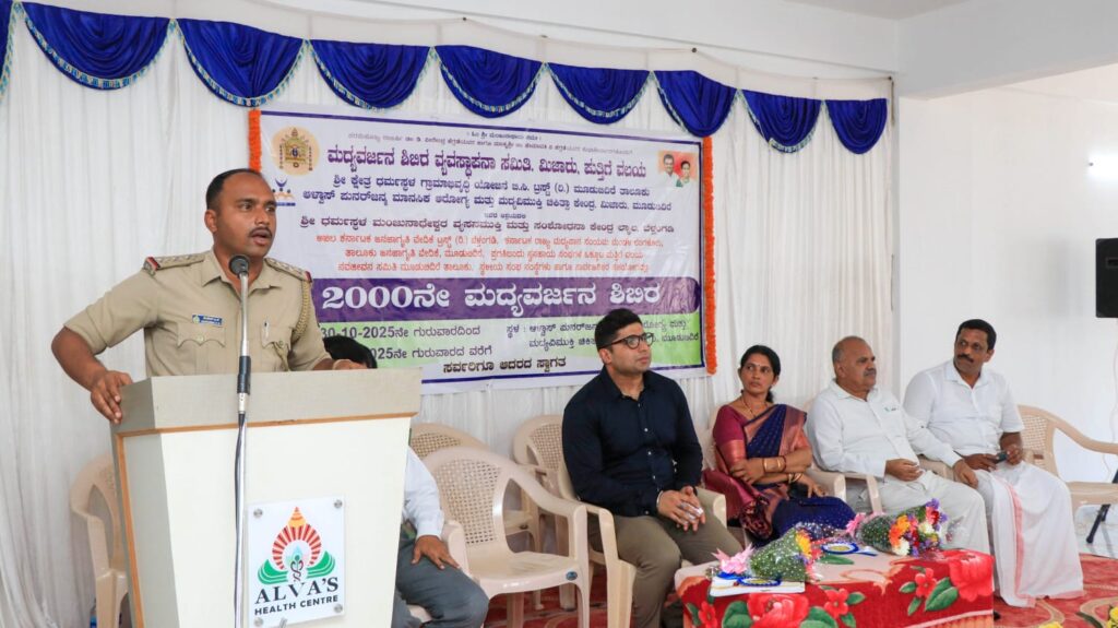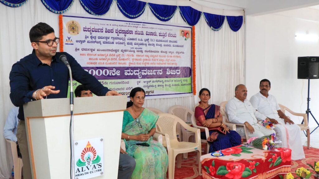 ಮದ್ಯವರ್ಜನ ಶಿಬಿರ ವ್ಯವಸ್ಥಾಪನಾ ಸಮಿತಿ ಮಿಜಾರು, ಶ್ರೀ ಕ್ಷೇತ್ರ ಧರ್ಮಸ್ಥಳ ಗ್ರಾಮಾಭಿವೃದ್ಧಿ ಯೋಜನೆ ಬಿ.ಸಿ. ಟ್ರಸ್ಟ್ (ರಿ) ಮೂಡುಬಿದಿರೆ ತಾಲೂಕು, ಆಳ್ವಾಸ್ ಪುನರ್ಜನ್ಮ ಮಾನಸಿಕ ಆರೋಗ್ಯ ಮತ್ತು ಮದ್ಯ ವಿಮುಕ್ತಿ ಚಿಕಿತ್ಸಾ ಕೇಂದ್ರ, ಮಿಜಾರು ಹಾಗೂ ಇನ್ನಿತರ ಸಂಘ ಸಂಸ್ಥೆಗಳ ಸಹಕಾರದಲ್ಲಿ ಶ್ರೀ ಧರ್ಮಸ್ಥಳ ಮಂಜುನಾಥೇಶ್ವರ ವ್ಯಸನಮುಕ್ತಿ ಮತ್ತು ಸಂಶೋಧನೆ ಕೇಂದ್ರ ಲಾಯಿಲ ಬೆಳ್ತಂಗಡಿ ಇದರ ವಿಸ್ತರಣಾ ಕಾರ್ಯಕ್ರಮದ ಅಂಗವಾಗಿ 2000ನೇ ಮದ್ಯವರ್ಜನ ಶಿಬಿರದ ಉದ್ಘಾಟನಾ ಕಾರ್ಯಕ್ರಮ ಮಿಜಾರಿನ ಆಳ್ವಾಸ್ ಪುನರ್ಜನ್ಮ ಮಾನಸಿಕ ಆರೋಗ್ಯ ಕೇಂದ್ರದಲ್ಲಿ ನಡೆಯಿತು. ಕಾರ್ಯಕಮವನ್ನು ಉದ್ಘಾಟಿಸಿ ಮಾತನಾಡಿದ ಆಳ್ವಾಸ್ ಶಿಕ್ಷಣ ಪ್ರತಿಷ್ಠಾನದ ಅಧ್ಯಕ್ಷ ಡಾ. ಎಂ ಮೋಹನ್ ಆಳ್ವ, ನಾನೇ ಸ್ವತಃ ಮದ್ಯ ವ್ಯಸನದ ವಿರುದ್ಧ ಸದಾ ಹೋರಾಡುತ್ತ ಬಂದವನು. ಸುಖದಲ್ಲಾಗಲಿ ದುಃಖದಲ್ಲಾಗಲಿ ನಾನು ಎಂದಿಗೂ ಮದ್ಯವನ್ನು ಸ್ಪರ್ಶಿಸಿದವನಲ್ಲ. ಮದ್ಯಪಾನ ಮಾಡಿದವನ ಮನಸ್ಸು ಅವನ ಸ್ವಾಧೀನದಲ್ಲಿರುವುದಿಲ್ಲ. ನಮ್ಮ ರಾಜ್ಯದಲ್ಲಿ 11,700 ಕ್ಕೂ ಹೆಚ್ಚು ಮದ್ಯದಂಗಡಿಗಳು ಇರುವುದೇ ಒಂದು ವಿಷಾದಕರ ಸ್ಥಿತಿ. ನಮ್ಮನ್ನು ಆಳುವ ಸರ್ಕಾರಗಳು ಮಧ್ಯಪಾನ ಅಥವಾ ದುಶ್ಚಟಗಳನ್ನು ನಿರ್ಭಂಧಿಸಲು ಟಿವಿ ಅಥವಾ ಪತ್ರಿಕೆಗಳಲ್ಲಿ ಡಿಸ್ಕ್ಲೈಮರ್ ಹಾಕುವುದರಿಂದ ಏನೂ ಪ್ರಯೋಜನ ಇಲ್ಲ. ಪಾನಮುಕ್ತ ಮಾಡುತ್ತೇವೆ ಎಂಬುದು ಸ್ಲೋಗನ್ಗಳಿಗೆ ಮಾತ್ರ ಸೀಮಿತವಾಗಬಾರದು. ಪೂಜ್ಯರ ಮಾರ್ಗದರ್ಶನದಲ್ಲಿ ರಾಜ್ಯವ್ಯಾಪಿ ನಡೆಯುತ್ತಿರುವ ಮದ್ಯವರ್ಜನ ಶಿಬಿರಗಳಿಂದ ಮದ್ಯ ವ್ಯಸನಿಗಳ ಕುಟುಂಬಗಳಲ್ಲಿ ಹೊಸ ಭರವಸೆ ಮೂಡಿದೆ ಎಂದರು. ಮೂಡುಬಿದಿರೆ ವೃತ್ತ ನಿರೀಕ್ಷಕ ಸಂದೇಶ ಪಿ. ಜಿ. ಮಾತನಾಡಿ, ನಮ್ಮ ಸಮಾಜದಲ್ಲಿ ಇಂತಹ ಮದ್ಯವರ್ಜನ ಶಿಬಿರಗಳು ನಡೆಯುವುದರಿಂದ ಪರೋಕ್ಷವಾಗಿ ಪೊಲೀಸ್ ಇಲಾಖೆಗೆ ದೊಡ್ಡ ಸಹಕಾರ ನೀಡಿದಂತೆ. ಮದ್ಯ ವ್ಯಸನಿಗಳು ತಮ್ಮ ಕುಟುಂಬಕ್ಕೆ ಹಾಗೂ ಸಮಾಜಕ್ಕೆ ಕಂಟಕರಾಗಿ ವರ್ತಿಸುತ್ತಾರೆ. ಈ ರೀತಿಯ ಶಿಬಿರಗಳು ಸಮಾಜದ ಸ್ವಾಸ್ಥ್ಯವನ್ನು ಕಾಪಾಡುತ್ತವೆ ಎಂದರು.