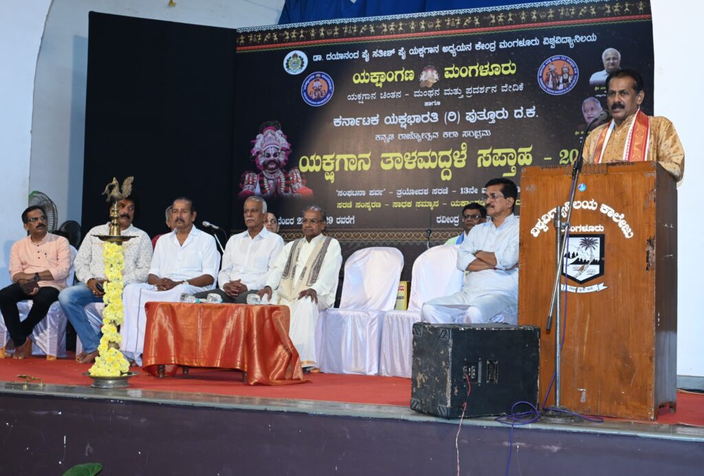 ಯಕ್ಷಗಾನ ಕರಾವಳಿಯ ಶ್ರೀಮಂತ ಕಲೆ. ಹಿಂದಿನಿಂದಲೂ ಕಲಾವಿದರು, ಸಂಘಟಕರು ಹಾಗೂ ಕಲಾ ಸಂಸ್ಥೆಗಳ ಪರಿಶ್ರಮದಿಂದ ಅದು ಬೆಳೆದು ಬಂದಿದೆ. ಇಂದಿನ ಬಹು ಮಾಧ್ಯಮಗಳ ನಡುವೆ ತಾಂತ್ರಿಕ ಜಗತ್ತಿನ ಸವಾಲುಗಳನ್ನು ಎದುರಿಸಿಯೂ ಯಕ್ಷಗಾನ ತನ್ನ ಅಸ್ತಿತ್ವವನ್ನು ಉಳಿಸಿಕೊಂಡಿದೆ. ಈ ದಿಸೆಯಲ್ಲಿ ಯಕ್ಷಾಂಗಣ ಸಂಸ್ಥೆ ಕಳೆದ ಹನ್ನೆರಡು ವರ್ಷಗಳಿಂದ ಯಕ್ಷಗಾನ ತಾಳಮದ್ದಳೆ ಪ್ರಕಾರಕ್ಕೆ ದೊಡ್ಡ ಮಟ್ಟದ ಕೊಡುಗೆ ನೀಡುತ್ತಾ ಬಂದಿದೆ ಎಂದು ದ.ಕ ಜಿಲ್ಲಾ ಹಾಲು ಉತ್ಪಾದಕರ ಒಕ್ಕೂಟದ ಅಧ್ಯಕ್ಷ ಕೆ. ರವಿರಾಜ ಹೆಗ್ಡೆ ಹೇಳಿದರು. ಯಕ್ಷಾಂಗಣ ಮಂಗಳೂರು, ಯಕ್ಷಗಾನ ಚಿಂತನ ಮಂಥನ ಮತ್ತು ಪ್ರದರ್ಶನ ವೇದಿಕೆಯು ಮಂಗಳೂರು ವಿ.ವಿ ಡಾ| ದಯಾನಂದ ಪೈ, ಶ್ರೀ ಸತೀಶ್ ಪೈ ಯಕ್ಷಗಾನ ಅಧ್ಯಯನ ಕೇಂದ್ರ ಮತ್ತು ಕರ್ನಾಟಕ ಯಕ್ಷ ಭಾರತಿ (ರಿ) ಪುತ್ತೂರು ಇವರ ಸಹಯೋಗದೊಂದಿಗೆ ನವೆಂಬರ್ 23 ರಿಂದ 29 ರವರೆಗೆ ಮಂಗಳೂರು ವಿವಿ ಕಾಲೇಜಿನ ರವೀಂದ್ರ ಕಲಾಭವನದಲ್ಲಿ ಜರಗಿದ ಕರ್ನಾಟಕ ರಾಜ್ಯೋತ್ಸವ ಕಲಾ ಸಂಭ್ರಮದ ‘ಯಕ್ಷಗಾನ ತಾಳಮದ್ದಳೆ – 2025’ ಹದಿಮೂರನೇ ವರ್ಷದ ನುಡಿ ಹಬ್ಬ, ತ್ರಯೋದಶ ಸರಣಿಯ ಸಮಾರೋಪ ಸಮಾರಂಭದಲ್ಲಿ ಅಧ್ಯಕ್ಷತೆ ವಹಿಸಿ ಅವರು ಮಾತನಾಡಿದರು. ಕನ್ನಡ ಸಾಹಿತ್ಯ ಪರಿಷತ್ತಿನ ಮಾಜಿ ರಾಜ್ಯಾಧ್ಯಕ್ಷ ಡಾ| ಹರಿಕೃಷ್ಣ ಪುನರೂರು ದೀಪ ಬೆಳಗಿ ಕಾರ್ಯಕ್ರಮಕ್ಕೆ ಚಾಲನೆ ನೀಡಿದರು.