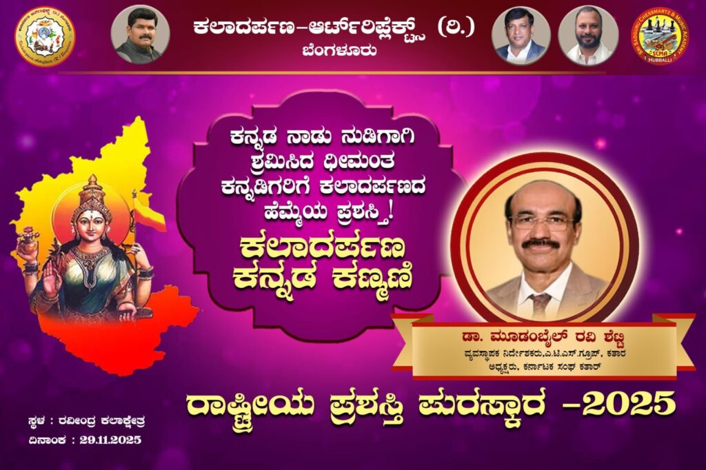 ಜಾಗತಿಕವಾಗಿ ಕರ್ನಾಟಕ ಸಂಸ್ಕೃತಿ ಮತ್ತು ಭಾಷೆಯನ್ನು ಪಸರಿಸುವಲ್ಲಿ ಸಲ್ಲಿಸಿದ ಅನುಪಮ ಸೇವೆಗಾಗಿ, ಕರ್ನಾಟಕ ಸಂಘ ಕತಾರ್ನ ಅಧ್ಯಕ್ಷರು ಹಾಗೂ ಎಟಿಎಸ್ ಗ್ರೂಪ್ನ ವ್ಯವಸ್ಥಾಪಕ ನಿರ್ದೇಶಕರಾದ ದೋಣಿಂಜೆಗುತ್ತು ಡಾ| ಮೂಡಂಬೈಲ್ ರವಿ ಶೆಟ್ಟಿಯವರಿಗೆ ಪ್ರತಿಷ್ಠಿತ ಕಲಾದರ್ಪಣ ಕನ್ನಡ ಕಣ್ಮಣಿ ರಾಷ್ಟ್ರೀಯ ಪ್ರಶಸ್ತಿ ನೀಡಿ ಗೌರವಿಸಲಾಯಿತು. ಬೆಂಗಳೂರಿನ ರವೀಂದ್ರ ಕಲಾಕ್ಷೇತ್ರದಲ್ಲಿ ನಡೆದ ‘ಕಲಾದರ್ಪಣ ಕನ್ನಡ ಹಬ್ಬ’ ಹಾಗೂ ರಾಜ್ಯೋತ್ಸವ ಸಂಭ್ರಮದ ವೇದಿಕೆಯಲ್ಲಿ ಈ ಸನ್ಮಾನ ನೆರವೇರಿತು.