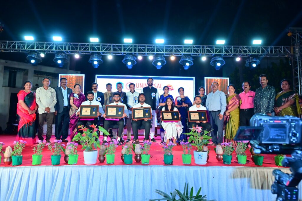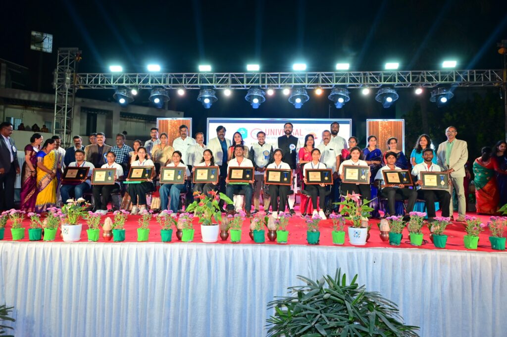 ಯೂನಿವರ್ಸಲ್ ಸಮೂಹ ಸಂಸ್ಥೆಯ ಚೇರ್ಮನ್ ಆರ್ ಉಪೇಂದ್ರ ಶೆಟ್ಟಿ ಮಾತನಾಡಿ, ತ್ಯಾಗ ಮತ್ತು ಪರಿಶ್ರಮದ ಫಲವಾಗಿ ಯೂನಿವರ್ಸಲ್ ಸಂಸ್ಥೆ ಇಂದು ಹೆಮ್ಮರವಾಗಿ ಬೆಳೆದಿದೆ. ಇಲ್ಲಿನ 8000ಕ್ಕೂ ಹೆಚ್ಚು ವಿದ್ಯಾರ್ಥಿಗಳು ಇಂದು ಅಧಿಕಾರಿಗಳಾಗಿ ದೇಶದಾದ್ಯಂತ ಕಾರ್ಯ ನಿರ್ವಹಿಸುತ್ತಿದ್ದಾರೆ ಎಂದು ಸ್ಮರಿಸಿದರು. ಅತ್ಯುತ್ತಮ ಅಂಕ ಗಳಿಸಿದ 100 ವಿದ್ಯಾರ್ಥಿಗಳಿಗೆ ಉಚಿತ ತರಬೇತಿ ನೀಡುವುದಾಗಿ ಘೋಷಿಸಿದರು. ಇದೇ ವೇಳೆ ಶಿಕ್ಷಣ ಕ್ಷೇತ್ರದಲ್ಲಿ ಅಮೋಘ ಸೇವೆ ಸಲ್ಲಿಸಿದ 10 ಶಿಕ್ಷಕರನ್ನು ಸನ್ಮಾನಿಸಲಾಯಿತು. ಎಂ ಆರ್ ಜಿ ಗ್ರೂಪ್ ಛೇರ್ಮನ್ ಡಾ|ಪ್ರಕಾಶ್ ಶೆಟ್ಟಿ, ಐ.ಆರ್.ಎಸ್ ಅಧಿಕಾರಿ ಕೊಟ್ರಸ್ವಾಮಿ, ಅಶೋಕ್ ಚನ್ನೇಗೌಡ, ಪ್ರಗತಿ ಉಪೇಂದ್ರ ಶೆಟ್ಟಿ ಮೊದಲಾದವರು ಈ ಸಂದರ್ಭದಲ್ಲಿ ವೇದಿಕೆಯಲ್ಲಿ ಉಪಸ್ಥಿತರಿದ್ದರು.