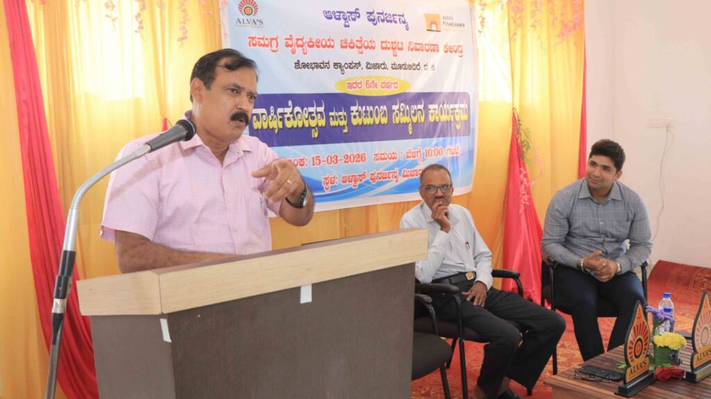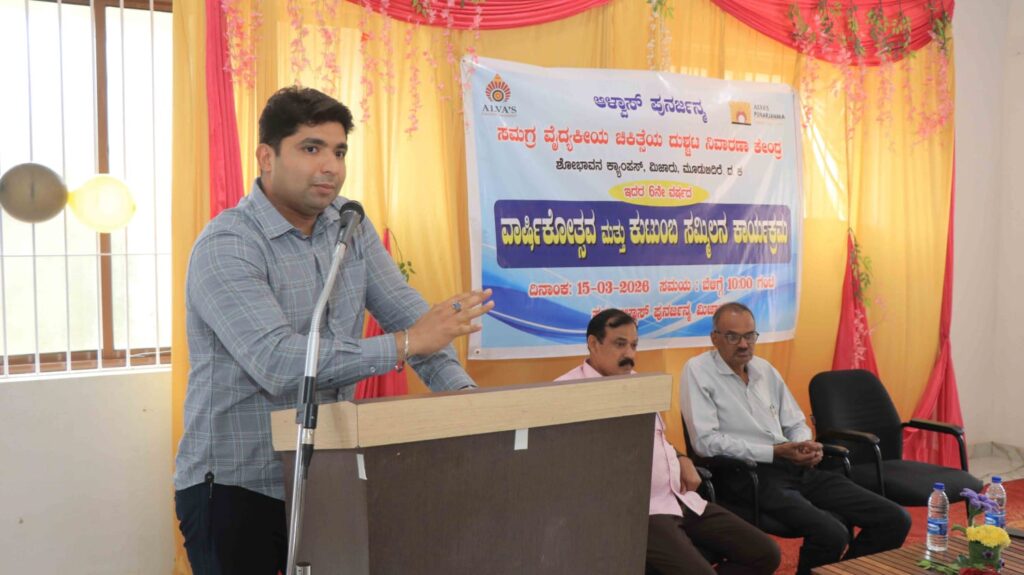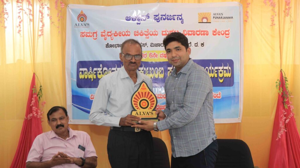 ಅಮಲು ಪದಾರ್ಥಗಳ ವ್ಯಸನವು ಸಾಮಾನ್ಯ ಸಾಮಾಜಿಕ ಪಿಡುಗಾಗಿದ್ದು, ಇದು ಕೇವಲ ದೈಹಿಕ ಸಮಸ್ಯೆಯಷ್ಟೇ ಅಲ್ಲದೇ ಮಾನಸಿಕ ಹಾಗೂ ಸಾಮಾಜಿಕ ಕಾಯಿಲೆಯೂ ಆಗಿದೆ ಎಂದು ಜಸ್ಟಿಸ್ ಕೆ.ಎಸ್. ಹೆಗ್ಡೆ ಆಸ್ಪತ್ರೆಯ ಮನೋವೈದ್ಯಕೀಯ ವಿಭಾಗದ ಪ್ರಾಧ್ಯಾಪಕರಾದ ಡಾ. ಸತೀಶ್ ರಾವ್ ಹೇಳಿದರು. ಅವರು ಆಳ್ವಾಸ್ ಪುನರ್ಜನ್ಮ ಸಮಗ್ರ ವೈದ್ಯಕೀಯ ಚಿಕಿತ್ಸೆಯ ದುಶ್ಚಟ ನಿವಾರಣಾ ಕೇಂದ್ರದ ಆರನೇ ವರ್ಷದ ವಾರ್ಷಿಕೋತ್ಸವ ಹಾಗೂ ಕುಟುಂಬ ಸಮ್ಮಿಲನ ಕಾರ್ಯಕ್ರಮವನ್ನು ಆಳ್ವಾಸ್ ಪುನರ್ಜನ್ಮ ಸಭಾಂಗಣದಲ್ಲಿ ಉದ್ಘಾಟಿಸಿ ಮಾತನಾಡಿದರು.