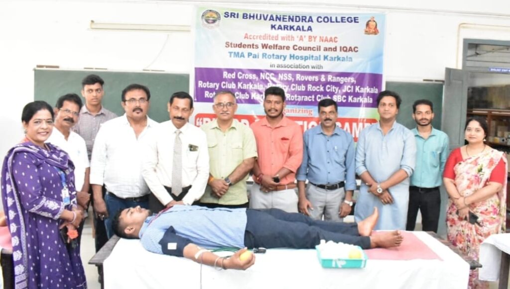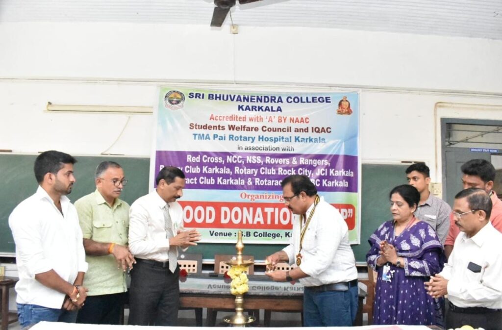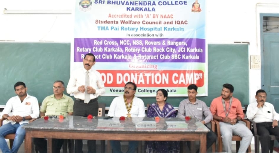 ರಕ್ತದಾನ ಮಾಡುವುದು ಜಾತಿ ಧರ್ಮಗಳನ್ನು ಮೀರಿದ ಮಾನವೀಯ ಸೇವೆಯಾಗಿದೆ. ರಕ್ತದಾನದ ಮೂಲಕ ಜೀವ ಉಳಿಸುವುದರ ಜೊತೆಗೆ ಒಂದು ಕುಟುಂಬದ ಜೀವನವನ್ನು ಅರಳಿಸುವ ಪುಣ್ಯದ ಕೆಲಸವು ರಕ್ತದಾನಿಯಿಂದ ಆಗುತ್ತದೆ. ಇಂತಹ ಕಾರ್ಯದಲ್ಲಿ ಕಾಲೇಜಿನ ವಿದ್ಯಾರ್ಥಿಗಳು ತೊಡಗಿಸಿಕೊಂಡಿರುವುದು ಶ್ಲಾಘನೀಯ ಎಂದು ಶ್ರೀ ಭುವನೇಂದ್ರ ಕಾಲೇಜು ಕಾರ್ಕಳ ಇಲ್ಲಿಯ ಪ್ರಾಚಾರ್ಯ ಮಂಜುನಾಥ ಎ.ಕೋಟ್ಯಾನ್ ಹೇಳಿದರು. ಅವರು ಶ್ರೀ ಭುವನೇಂದ್ರ ಕಾಲೇಜು ವಿದ್ಯಾರ್ಥಿ ಪಾಲನಾ ಸಮಿತಿ, ಟಿ.ಎಂ.ಎ ಪೈ ರೋಟರಿ ಆಸ್ಪತ್ರೆ ಕಾರ್ಕಳ ಇವರ ವತಿಯಿಂದ ರೋಟರಿ ಕ್ಲಬ್ ಕಾರ್ಕಳ, ರೋಟರಿ ಕ್ಲಬ್ ಕಾರ್ಕಳ ರಾಕ್ ಸಿಟಿ, ಜೇಸಿಐ ಕಾರ್ಕಳ, ಕಾಲೇಜಿನ ರೆಡ್ ಕ್ರಾಸ್, ಎನ್.ಸಿ.ಸಿ, ಎನ್.ಎಸ್.ಎಸ್, ರೋವರ್ಸ್ ಮತ್ತು ರೆಂಜರ್ಸ್, ರೋಟರ್ಯಾಕ್ಟ್ ಕ್ಲಬ್ ಕಾರ್ಕಳ ಇವರ ಸಯೋಗದೊಂದಿಗೆ ನಡೆದ ರಕ್ತದಾನ ಶಿಬಿರದ ಅಧ್ಯಕ್ಷತೆಯನ್ನು ವಹಿಸಿ ಕಾರ್ಯಕ್ರಮವನ್ನು ಉದ್ಘಾಟಿಸಿ ಮಾತನಾಡಿದರು.