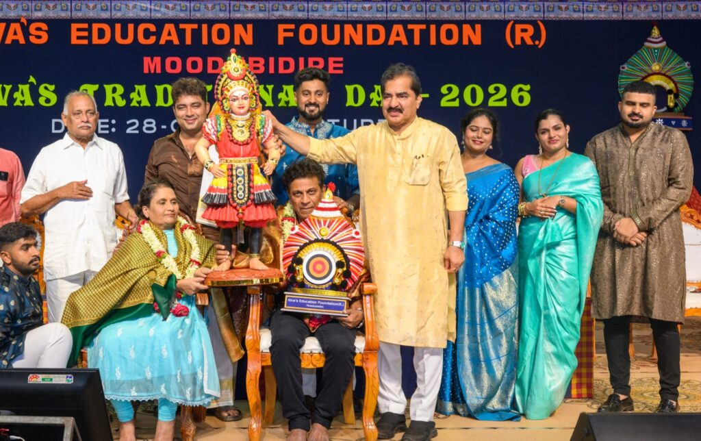 ಕರುನಾಡ ಚಕ್ರವರ್ತಿ ಹ್ಯಾಟ್ರಿಕ್ ಹೀರೋ ಶಿವರಾಜ್ ಕುಮಾರ್ ಮತ್ತು ಗೀತಾ ದಂಪತಿ ಸಮ್ಮುಖದಲ್ಲಿ ಸಮಗ್ರ ಭಾರತದ ಸಾಂಸ್ಕೃತಿಕ ಚಿತ್ರಣವು ಜೀವ ಪಡೆದಂತೆ ಕಂಗೊಳಿಸಿದರೆ, ಅಷ್ಟೇ ವಿನೀತರಾದ ಶಿವರಾಜ್ ಕುಮಾರ್ ದಂಪತಿ ವಿನಮ್ರತೆ ತೋರಿದರು. ಇದು ವಿದ್ಯಾಗಿರಿಯ ಕೃಷಿ ಸಿರಿ ಆವರಣದ ಮುಂಡ್ರೆದಗುತ್ತು ಕೆ. ಅಮರನಾಥ ಶೆಟ್ಟಿ ಸಭಾಂಗಣದಲ್ಲಿ ಆಳ್ವಾಸ್ ಶಿಕ್ಷಣ ಪ್ರತಿಷ್ಠಾನದ ‘ಆಳ್ವಾಸ್ ಸಂಪ್ರದಾಯ ದಿನ -2026’ ರ ಝೋಷ್ಇದರಿಂದ ಪುಳಕಿತರಾದ ಶಿವರಾಜ್ ಕುಮಾರ್ ತಾಳ ಹಿಡಿದು, ‘ಕೋಲು ಮಂಡೆ ಜಂಗಮ ದೇವರು…..’ ಹಾಡಿ ಹೆಜ್ಜೆ ಹಾಕಿದರು. ತಮ್ಮ ಆರಂಭಿಕ ‘ಆನಂದ್’ ಸಿನಿಮಾದ ‘ಟುವ್ವಿ ಟುವ್ವಿ’ ಹಾಡಿನಿಂದ ಹಿಡಿದು ಪುನೀತ್ ರಾಜ್ ಕುಮಾರ್ ಅವರ ‘ಬೊಂಬೆ ಹೇಳುತೈತೆ… ನೀನೆ ರಾಜಕುಮಾರ…’ ವರೆಗಿನ ಹಾಡುಗಳನ್ನು ಹಾಡಿದರು. ಕಿಕ್ಕಿರಿದ ವಿದ್ಯಾರ್ಥಿ ಸಾಗರವು ಪುನೀತವಾಯಿತು. ಸಾಕ್ಷಾತ್ಕರಿಸಿದ ಡಾ. ಎಂ ಮೋಹನ ಆಳ್ವ ಖುಷಿ ಪಟ್ಟು ನಸುನಕ್ಕರು. ಇದಕ್ಕೂ ಮೊದಲು ದೀಪ ಬೆಳಗಿ, ಚೆಂಡೆ ಪರಿಕರ ಬಡಿದು ಕಾರ್ಯಕ್ರಮಕ್ಕೆ ಚಾಲನೆ ನೀಡಿದ ಶಿವರಾಜ್ ಕುಮಾರ್ ಅವರು, ‘ಏನನ್ನೇ ಸಾಧಿಸಬೇಕಾದರೂ ಮನಸ್ಸಿನಲ್ಲಿ ಧಾರಾಳತನ ಬೇಕು. ಅದನ್ನು ನಾನಿಲ್ಲಿ ಕಂಡಿದ್ದೇನೆ. ಆಳ್ವರಿಗೆ ಧನ್ಯವಾದ’ ಎಂದರು. ಎಲ್ಲರನ್ನೂ ಒಳಗೊಳ್ಳುವುದೇ ಕನ್ನಡ ಕರ್ನಾಟಕದ ಸಂಸ್ಕೃತಿ. ಇಡೀ ಭಾರತದ ವಿಭಿನ್ನ ಸಂಸ್ಕೃತಿ ಒಂದುಗೂಡಿರುವುದನ್ನು ನಾನು ಇಲ್ಲಿ ಕಂಡೆನು. ನೀವೆಲ್ಲಾ ಹೀಗೆಯೇ ಮುಂದೆಯೂ ಜೊತೆಯಾಗಿ ಜೀವಿಸಿ. ಎಲ್ಲರೂ ಒಂದಾಗಿ ಬದುಕಿ ಸಾಧಿಸಿ ಎಂದು ವಿದ್ಯಾರ್ಥಿಗಳಿಗೆ ಸಂದೇಶ ನೀಡಿದರು. ಮೂಡುಬಿದಿರೆಗೆ ನಾನು ಎರಡನೇ ಬಾರಿಗೆ ಬರುತ್ತಿದ್ದೇನೆ. ಸ್ಮೈಲ್ ಸಿನಿಮಾಕ್ಕಾಗಿ ಬಂದಿದ್ದೆವು. ಈಗ ತುಂಬಾ ಖುಷಿಯಾಯಿತು. 40 ವರ್ಷಗಳ ಬಳಿಕವೂ ನನ್ನ ಮೇಲೆ ಅದೇ ಪ್ರೀತಿ ತೋರುತ್ತಿದ್ದೀರಲ್ಲಾ ನಾನೇ ಪುಣ್ಯವಂತ ಎಂದು ಕೃತಜ್ಞರಾದರು.