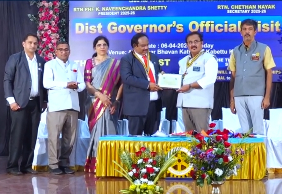 ರೋಟರಿ ಕ್ಲಬ್ ಕಾರ್ಕಳ ಇಲ್ಲಿಗೆ ರೋಟರಿ ಜಿಲ್ಲೆ, 3182 ರ ಜಿಲ್ಲಾ ಗವರ್ನರ್ Mphf ಕೆ. ಪಾಲಾಕ್ಷರವರು ಅಧಿಕೃತ ಭೇಟಿ ನೀಡಿದರು. ಕಾಬೆಟ್ಟು ಅಂಬೇಡ್ಕರ್ ಭವನದಲ್ಲಿ ನಡೆದ ಈ ಸಮಾರಂಭದಲ್ಲಿ ರೋಟರಿ ಕ್ಲಬ್ಬಿನ ಅಧ್ಯಕ್ಷ ರೋ. Phf ಕೆ.ನವೀನ್ ಚಂದ್ರ ಶೆಟ್ಟಿಯವರು ಪ್ರಾಸ್ತಾವಿಕ ಮಾತುಗಳನ್ನಾಡಿ ಎಲ್ಲಾ ಅತಿಥಿಗಳನ್ನು ಸ್ವಾಗತಿಸಿದರು. ಸಮಾರಂಭದ ಮುಖ್ಯ ಅತಿಥಿ ಜಿಲ್ಲಾ ಗವರ್ನರ್ ರೋ. Mphf ಕೆ.ಪಾಲಾಕ್ಷ ರವರು ಮಾತನಾಡುತ್ತಾ, ಕಾರ್ಕಳ ರೋಟರಿ ಕ್ಲಬ್ಬಿನ ಸಮುದಾಯ ಸೇವಾ ಕಾರ್ಯಕ್ರಮಗಳು, ಶಿಕ್ಷಣಕ್ಕೆ ನೀಡುತ್ತಿರುವ ಸೇವೆಗಳು, ಪರಿಸರ ಹಾಗೂ ಆರೋಗ್ಯ ಕ್ಷೇತ್ರದಲ್ಲಿ ಮಾಡಿದ ಸಾಧನೆಗೆ ಮೆಚ್ಚುಗೆ ವ್ಯಕ್ತ ಪಡಿಸಿದರು. ಇದೇ ಸಂದರ್ಭದಲ್ಲಿ ಖ್ಯಾತ ಗುತ್ತಿಗೆದಾರ ಸುಜಯ್ ಕುಮಾರ್ ಶೆಟ್ಟಿ ಮತ್ತು ಚಲನಚಿತ್ರ ನಟ, ನಿರ್ದೇಶಕ ಮತ್ತು ಪ್ರಸಿದ್ಧ ಪ್ರಶಂಸ ನಾಟಕ ತಂಡದ ಕಲಾವಿದ ಪ್ರಸನ್ನ ಶೆಟ್ಟಿ ಬೈಲೂರು ಇವರನ್ನು ಸನ್ಮಾನಿಸಲಾಯಿತು.