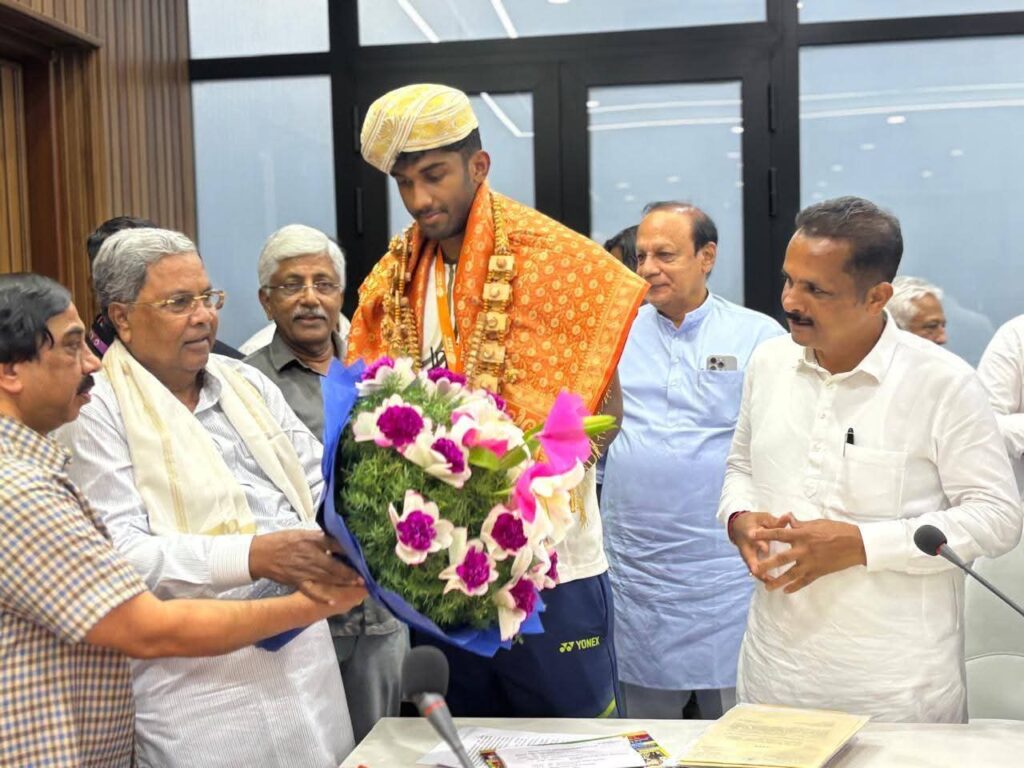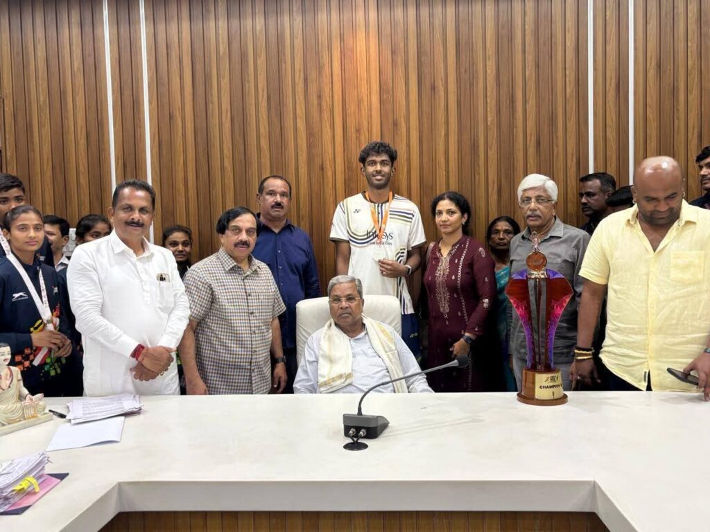 ಕರ್ನಾಟಕ ರಾಜ್ಯದ ಮುಖ್ಯಮಂತ್ರಿ ಸನ್ಮಾನ್ಯ ಸಿದ್ದರಾಮಯ್ಯರವರು ವಿಧಾನಸೌಧ ಕಚೇರಿಯಲ್ಲಿ ಅಂತರಾಷ್ಟ್ರೀಯ ಬ್ಯಾಡ್ಮಿಂಟನ್ ಆಟಗಾರ ಕಾರ್ಕಳದ ಸಾಣೂರಿನ ಹೆಮ್ಮೆಯ ಕ್ರೀಡಾ ಪ್ರತಿಭೆ ಆಯುಷ್ ಶೆಟ್ಟಿಯವರನ್ನು ಅಭಿನಂದಿಸಿ ಶಾಲು ಹಾಕಿ ಗೌರವಿಸಿದರು. ಈ ಸಂದರ್ಭದಲ್ಲಿ ಮಾಜಿ ಸಚಿವ ಹಾಗೂ ಮಾಜಿ ಸಂಸದರಾದ ಕೆ ಜಯಪ್ರಕಾಶ್ ಹೆಗ್ಡೆ, ವಿನಯಕುಮಾರ್ ಸೊರಕೆ, ಕಾರ್ಕಳ ಕಾಂಗ್ರೆಸ್ ಮುಖಂಡರಾದ ಉದಯ ಕುಮಾರ್ ಶೆಟ್ಟಿ ಮುನಿಯಾಲು, ವಿಧಾನಪರಿಷತ್ ಸದಸ್ಯರಾದ ಗೋವಿಂದರಾಜು, ಯುವ ಮುಖಂಡ ಅಶ್ವಿತ್ ಜೈನ್, ಆಯುಶ್ ಶೆಟ್ಟಿಯವರ ತಂದೆ ರಾಮ ಪ್ರಕಾಶ್ ಶೆಟ್ಟಿ, ತಾಯಿ ಶ್ರೀಮತಿ ಶಾಲ್ಮಲಿ ಶೆಟ್ಟಿ ಮೊದಲಾದವರು ಉಪಸ್ಥಿತರಿದ್ದರು.