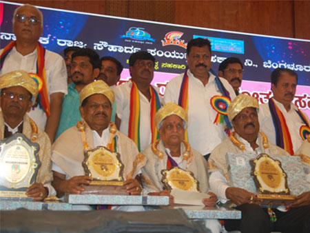 ಕರ್ನಾಟಕ ರಾಜ್ಯ ಸೌಹಾರ್ದ ಸಂಯುಕ್ತ ಸಹಕಾರಿ ನಿಯಮಿತ ಬೆಂಗಳೂರು ಇವರ ವತಿಯಿಂದ ಬೆಂಗಳೂರಿನ ಅರಮನೆ ಮೈದಾನದಲ್ಲಿ ಜರಗಿದ ಸೌಹಾರ್ದ ಸಹಕಾರಿಗಳ ರಜತ ಮಹೋತ್ಸವ ಸಮಾವೇಶ ಸಂದರ್ಭದಲ್ಲಿ ಸಹಕಾರ ರತ್ನ ಪುರಸ್ಕೃತ ಆರ್ಬಿಐನ ಮಾಜಿ ನಿರ್ದೇಶಕರೂ ಆಗಿರುವ ಪುತ್ತೂರಿನ ಡಾ| ಅಗರಿ ನವೀನ್ ಭಂಡಾರಿಯವರನ್ನು ಸನ್ಮಾನಿಸಿ, ಗೌರವಿಸಲಾಯಿತು. ಕೇಂದ್ರ ಸಚಿವ ಪ್ರಹ್ಲಾದ್ ಜೋಷಿ ಸೇರಿದಂತೆ ಅನೇಕ ಗಣ್ಯರು ಹಾಗೂ ರಾಜ್ಯ ಸೌಹಾರ್ದ ಸಂಯುಕ್ತ ಸಹಕಾರಿ ಅಧ್ಯಕ್ಷರು ಮತ್ತು ಪದಾಧಿಕಾರಿಗಳು ಸಮಾವೇಶದಲ್ಲಿ ಉಪಸ್ಥಿತರಿದ್ದರು. ಚಿತ್ರ, ವರದಿ : ಉಮಾಪ್ರಸಾದ್ ರೈ